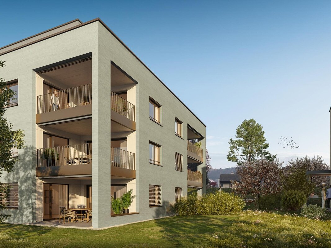Wer die Ruhe schätzt und zugleich gerne rasch in der Stadt ist, wohnt in Fulenbach genau richtig. Die Gemeinde liegt im Solothurner Mittelland: fern vom Trubel und, dank guter Verkehrsanbindung, zugleich nah an mehreren urbanen Zentren. Unweit des Dorfkerns entsteht die Neumatt – Wohn- und Lebensraum, der nichts vermissen lässt: viel Grün, viel Luft, viel Sonne, in den Wohnungen ein hoher Ausbaustandard, viel Privatsphäre. Ja, es ist alles da, was es braucht für ein angenehmes Leben nach eigenem Gusto. Ab Sommer 2026 sind die ersten Wohnungen bezugsbereit. Mit ihrer kompakten Bauweise fügt sich die Neumatt nahtlos ins Einfamilienhaus-Quartier ein. Die drei Gebäude mit jeweils sieben Eigentumswohnungen stehen locker verteilt zwischen Feld und einer wenig befahrenen Quartierstrasse, versetzt angeordnet. Das sorgt für eine grosse Durchlässigkeit: Luft, Platz, Weitblick. Auch die Begrünung der Anlage ist luftig gestaltet. Um die Überbauung möglichst autofrei zu halten, werden die Fahrzeuge der Bewohnerinnen und Bewohner in einer unterirdischen Einstellhalle parkiert. Ungestörte Privatsphäre also, eingebettet in ein umfassendes Ganzes – eine ideale Wohnumgebung für Familien, Senioren, Paare, die zentrales Wohnen und Ruhe gleichermassen schätzen. Dörfern. Und der Jura ist nicht weit.