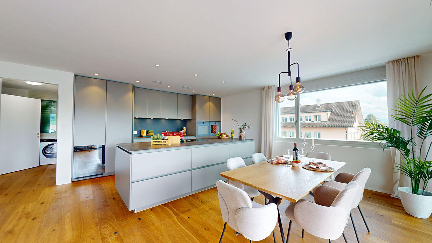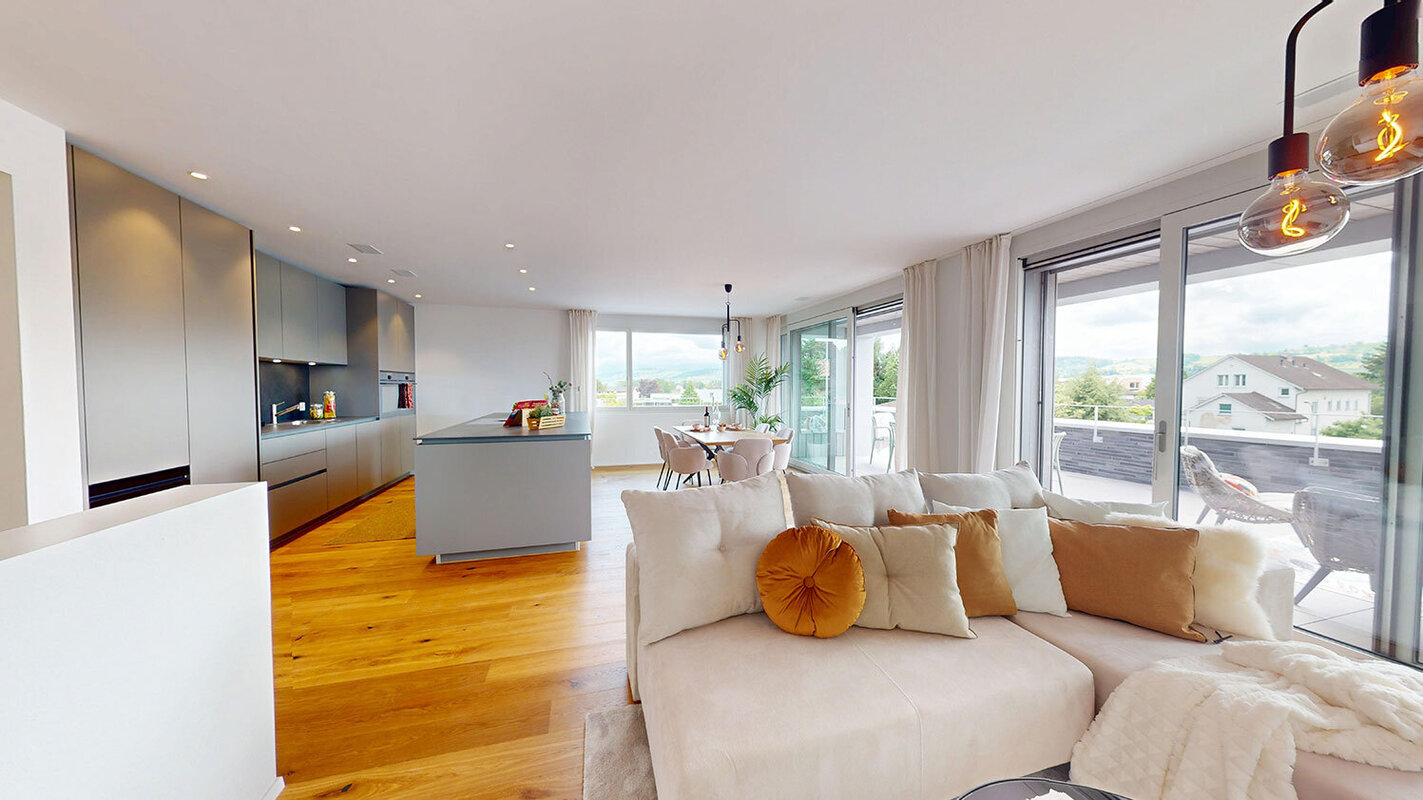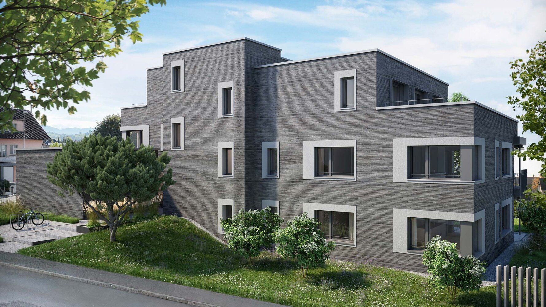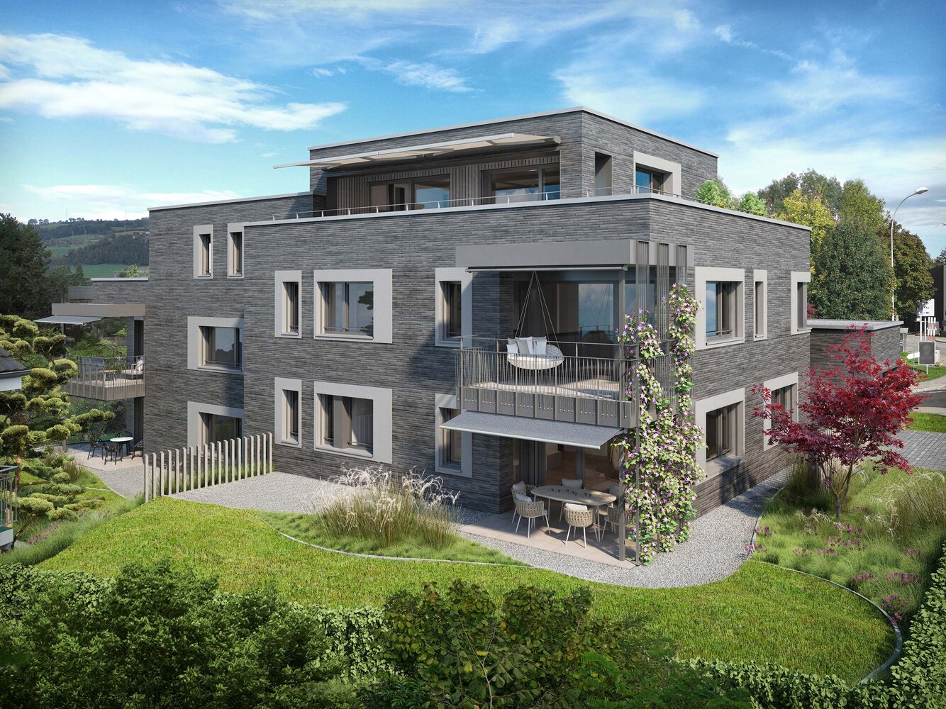 An der Spitalstrasse in Sursee entsteht das Neubauprojekt Lungholzblick, ein Mehrfamilienhaus bestehend aus drei eleganten Körpern, welche sich in die bestehende Topografie harmonisch einfügen. Die Lage der fünf hochwertigen Eigentumswohnungen vereinen ruhiges Wohnen, jedoch auch die Nähe zu Annehmlichkeiten der Stadt Sursee. Die ausgezeichnete Verkehrsanbindung bietet zudem eine hervorragende Ausgangslage für berufliche und private Mobilität. Die vorhandene Topografie prägt massgeblich die innere Organisation und Struktur des Gebäudes. Das Split-Level-Prinzip wird dabei konsequent im Innenraum umgesetzt, um die natürliche Geländebeschaffenheit optimal zu integrieren und eine ausgewogene Raumaufteilung zu schaffen. Klassische Architekturelemente werden zeitgemäss interpretiert, mit einer eleganten Klinkerfassade und sorgfältig ausgewählten Materialien. Die barrierefreien, funktional durchdachten Grundrisse schaffen grosszügige, offene Wohnräume, die Tageslicht einfangen. Komfortmerkmale wie einen eigenen Waschturm und zusätzlicher Stauraum ergänzen das Wohnerlebnis. Zwei Erdgeschosswohnungen bieten grosszügige Gartenflächen als private Rückzugsorte, während die Attikawohnung mit zwei Terrassen und einem beeindruckenden Rundumblick besticht. Die nachhaltige Ausrichtung des Projekts wird durch eine Erdsonden-Wärmepumpe, eine Photovoltaikanlage sowie vorbereitete E-Ladestationen gewährleistet, um zukunftsorientierte Energieeffizienz zu fördern.