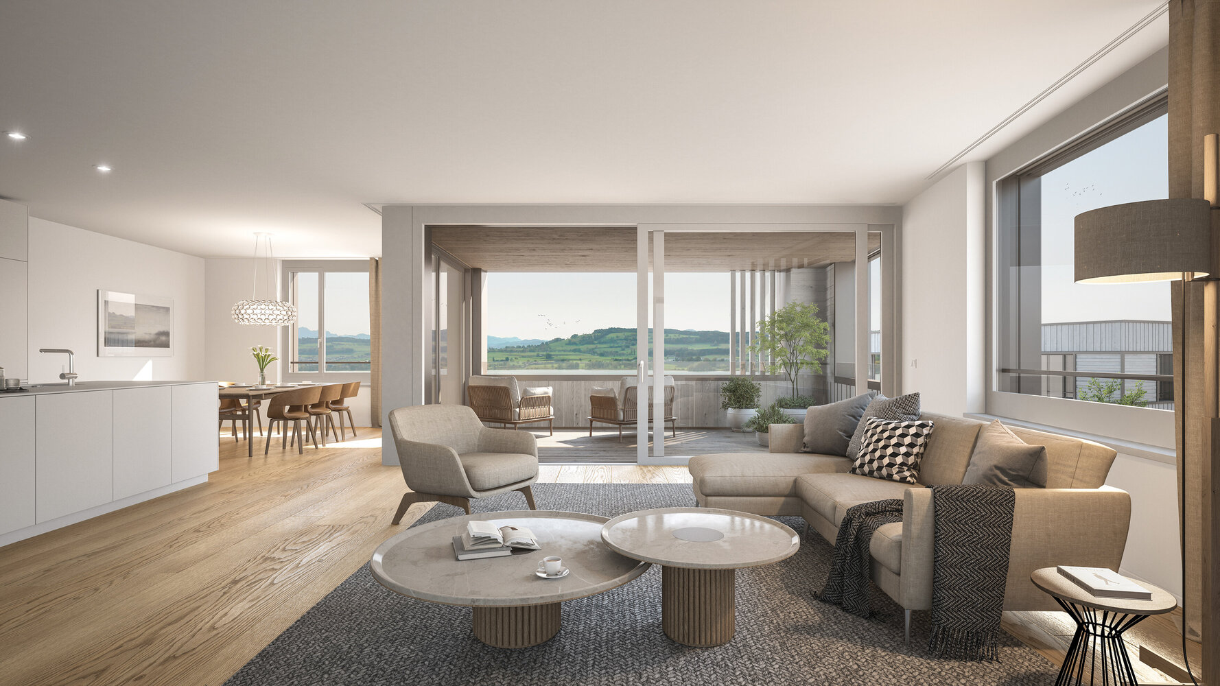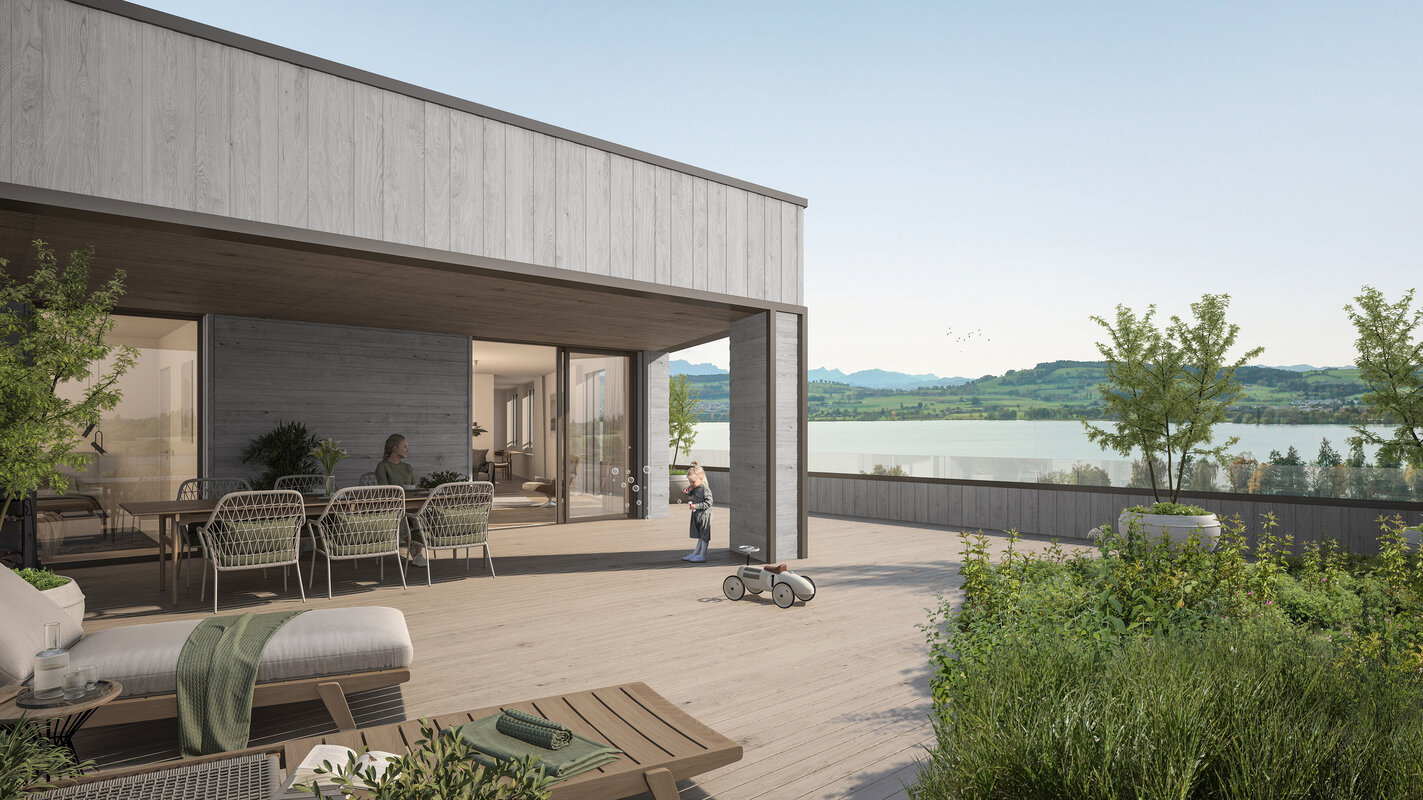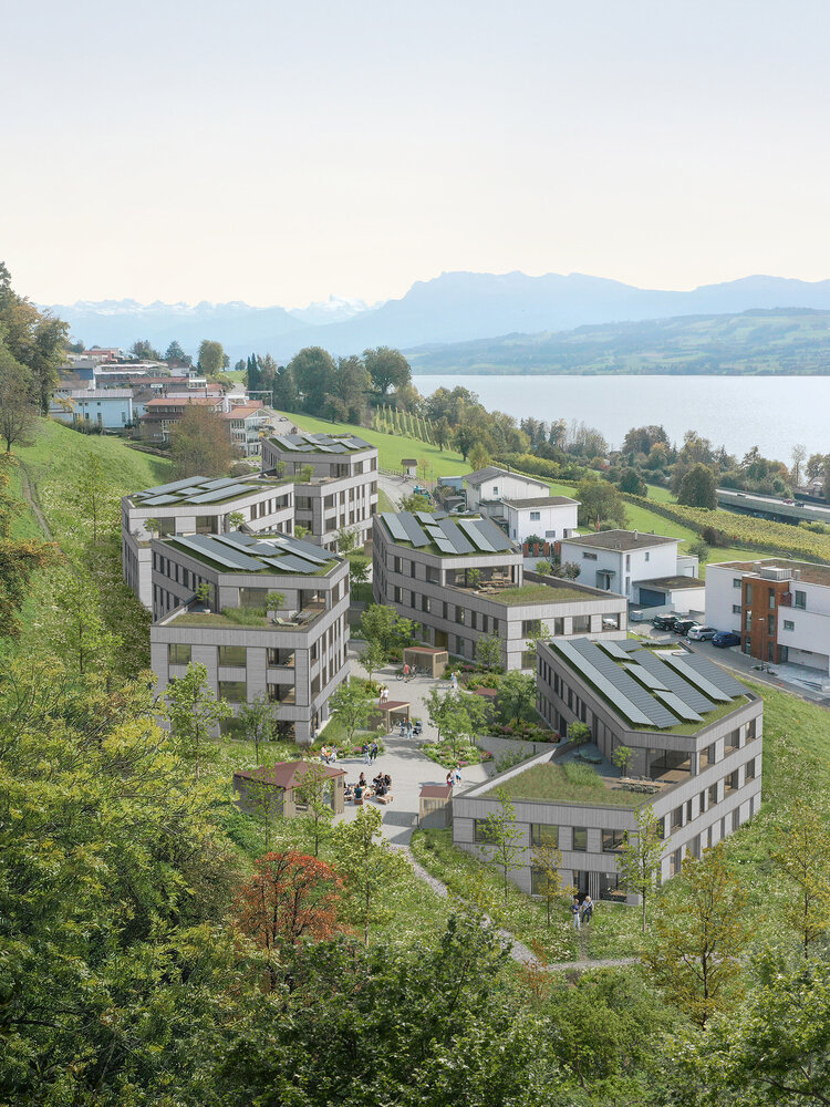 Unter dem Leitsatz „Bauen für die Zukunft“ entsteht an einzigartiger Lage oberhalb des Sempachersees ein Ensemble von fünf Baukörpern mit 50 attraktiven Eigentumswohnungen. Die Gebäude sind entlang der Hangkanten angeordnet und fügen sich sensibel in die Topografie ein. Durch die variierenden Gebäudehöhen und polygonalen Formen entstehen grosszügige Raumabfolgen, welche vielfältige Ausblicke auf die umliegende Landschaft sowie den See ermöglichen. Zwischen den Gebäuden wird eine weitläufige und sorgfältig gestaltete Erschliessungsfläche ausgebildet, die Raum für Spiel und Aufenthalt bietet. Weitere Flächen bleiben als ökologisch wertvoller Landschaftsraum erhalten. Die natürlich wirkenden Holzfassaden mit horizontalen Bänderungen, tragen zum insgesamt harmonisch wirkenden Ausdruck bei. Das Projekt legt besonderen Wert auf Nachhaltigkeit und Energieeffizienz, erfüllt die höchsten Anforderungen einer 2000-Watt-GesellschaftSiedlung und den Minergie-A-Eco Standard. Zusätzlich werden umfassende Vorgaben zu Mobilität und Energiecontrolling berücksichtigt, um eine zukunftsorientierte und ressourcenschonende Nutzung zu gewährleisten.
