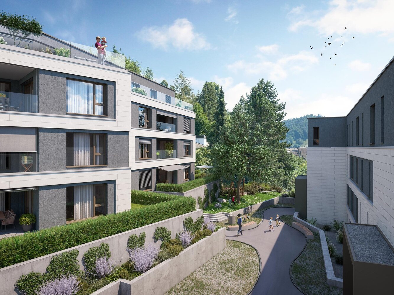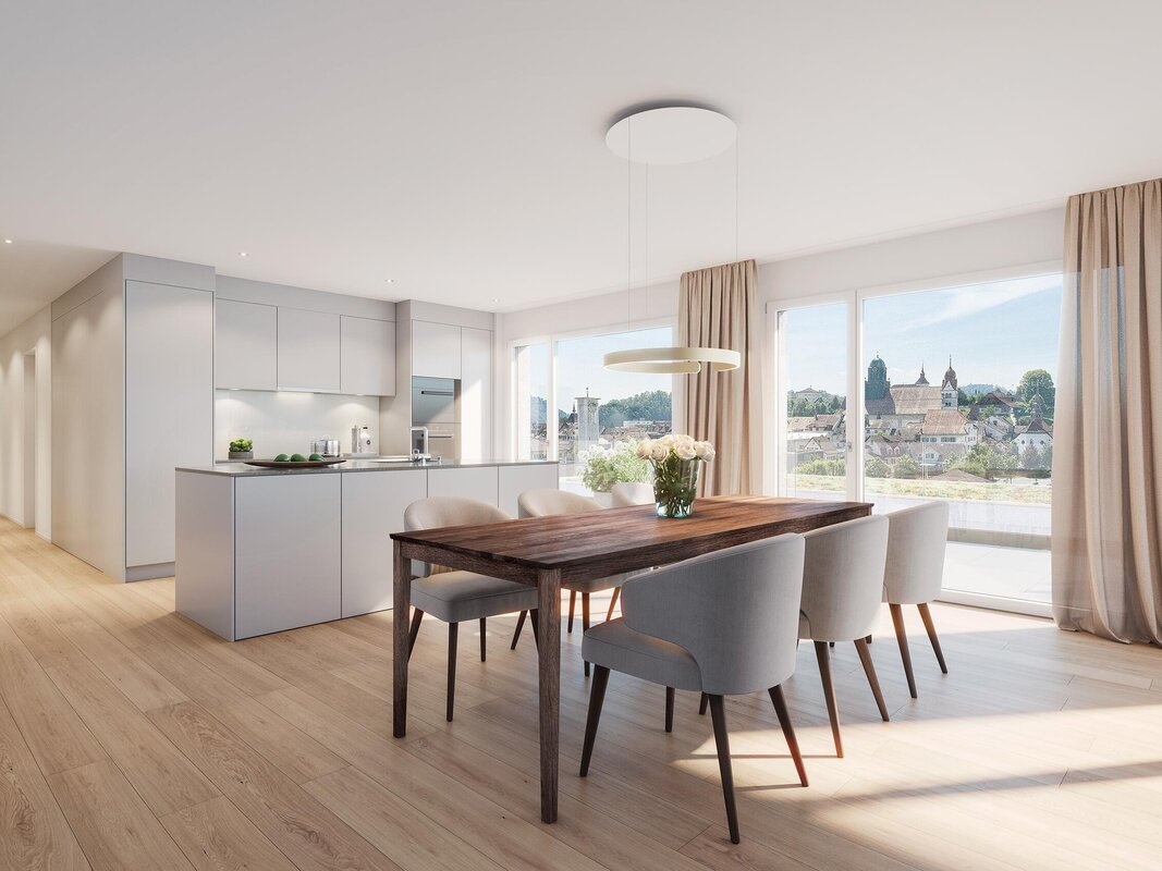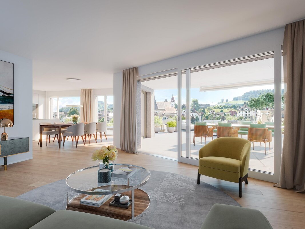 So verschieden die Eigentumswohnungen in den beiden Gebäuden teilweise sind: Sie sind allesamt hell, grosszügig geschnitten und der Ausbaustandard ist hoch. Die Wohnüberbauung Grüenegg liegt schön, praktisch, teilweise leicht erhöht – und unweit der Willisauer Altstadt. Hier wohnt es sich ruhig, beschaulich, mit viel Grün rundherum. Schulen, Einkaufsmöglichkeiten, sämtliche Dienstleistungen des täglichen Bedarfs sind im Nu erreichbar, zu Fuss oder mit dem Velo. In der Grüenegg kommen Generationen zusammen, leben mit- und nebeneinander. Die tolle Lage, die freundliche Umgebung und die moderne Bauweise kommen den Bedürfnissen von Familien, jüngeren Paaren und SeniorInnen gleichermassen entgegen. Ja, von hier aus sind Sie genauso schnell in der idyllischen Natur wie im regen Treiben des Städtchens.